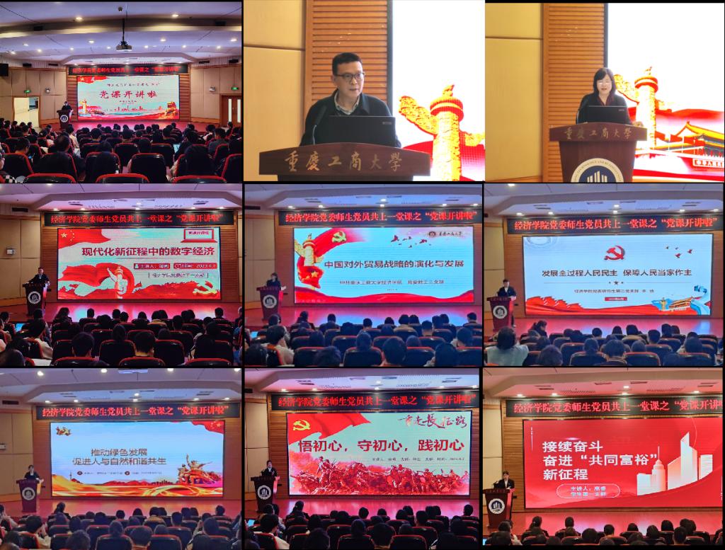本次“党课开讲啦”活动由6名师生党员围绕党的二十大报告中关于“中国式现代化”九个方面的本质要求展开宣讲。教工一支部邹圆老师分析了数字经济对推进中国式现代化的战略意义,展示了我国数字经济发展量稳质升的成效,提出在现代化新征程下做强做优做大数字经济的关键举措。教工二支部成肖老师带领党员们回顾了新中国成立以来对外贸易战略的演化与发展,指出在当前“双循环”新发展格局下,要推进高水平对外开放,增强国内国际两个市场两种资源联动效应,提升贸易投资合作质量和水平。学生一支部高睿同学深入阐述了中国式现代化是全体人民共同富裕的现代化,并结合学生党员的使命担当,号召全体学生党员发挥模范带头作用,努力成为共同富裕的推动者。学生二支部余明同学以“悟初心,守初心,践初心”为主题,表示党员要不忘初心、牢记使命,谦虚谨慎、艰苦奋斗,敢于斗争、善于斗争,并强调了在中国式现代化新征程中,作为共产党员需时刻牢记“三个务必”。研究生一支部王堃同学结合绿色发展的主题,阐述了习近平生态文明思想及在党的二十大报告中的新论断,倡导推动人与自然和谐共生。研究生二支部李益同学聚焦“发展全过程人民民主”这一本质要求,阐释了全过程人民民主是全链条、全方位、全覆盖的民主。