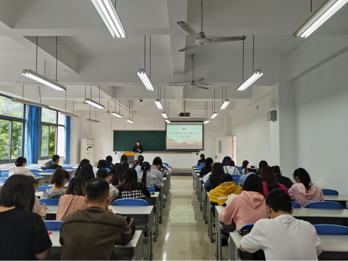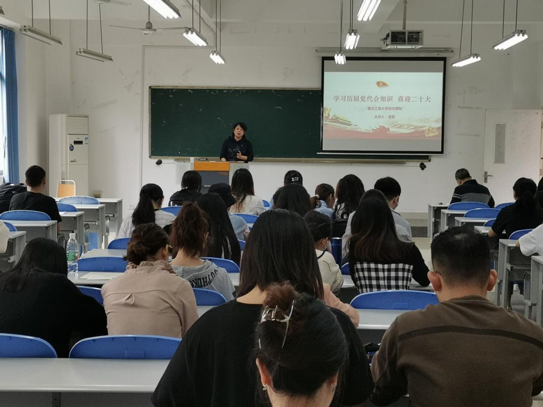 雷菁组织员围绕新中国的发展历程,以时间为脉络从新民主主义革命、社会主义革命和建设、改革开放和社会主义建设新时期、中国特色社会主义新时代四个历史阶段,详细讲解了从中共一大到中共十九大的会议召开的内容和历史意义。其中,她重点阐释了中共十一届三中全会的历史意义,指出这次会议将党和全国的工作重心由阶级斗争转移到全面经济建设上来,是我党历史上的一个重要转折点。雷菁组织员在讲述中共十四大时强调,建立社会主义市场经济体制是我们党的一个伟大创举,也是社会主义认识史上一次历史性的飞跃。最后,雷菁组织员列举了改革开放四十年来的成就,呼吁青年党员们在未来新征程中要继续不忘初心、牢记使命,在红色传承中发扬革命精神,汲取奋进力量。党课后,学生党员们纷纷发表了学习心得,马嘉馨同志说:“我将从历次党代会精神中感悟思想伟力、汲取奋斗力量,强化使命担当。”张嘉麟同志说:“本次党课学习理清了党史发展脉络,从而能更好地领会历次党代会召开的精神和意义。”