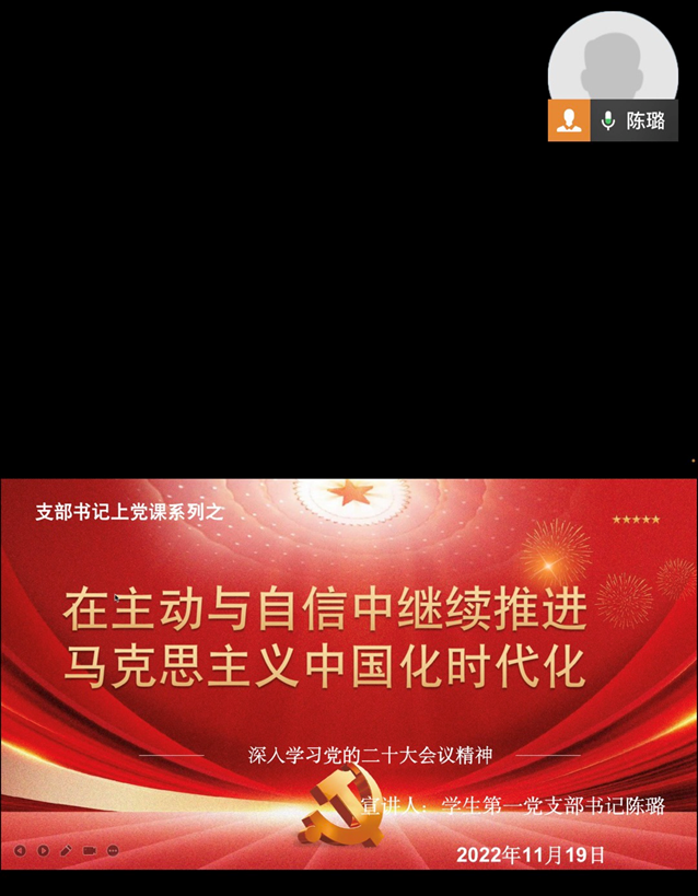 为深入学习领会党的二十大报告中关于“马克思主义中国化时代化”的重要论述,弘扬伟大建党精神,11月19日,新葡萄8883官网AMG学生第一党支部在田家炳404会议室以“线上+线下”方式开展支部书记上党课活动,支部全体党员参加。