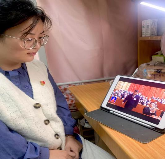 研究生四支部书记张国培在田家炳406会议室收看党的二十大,支部其他同志分散在寝室收看党的二十大。在聆听完习近平总书记的二十大报告后,支部书记张国培感受到鼓舞,并与支部青年同志们分享二十大报告中对青年的殷切期待,强调青年的责任担当和历史使命。支部同志们一起分享了心得体会。