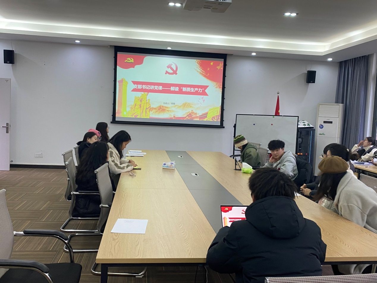 12月28日,新葡萄8883官网AMG研究生第四党支部开展学习贯彻习近平新时代中国特色社会主义思想主题教育活动,研究生四支部统战委员何建为支部党员讲授题为《解读“新质生产力”》的党课。