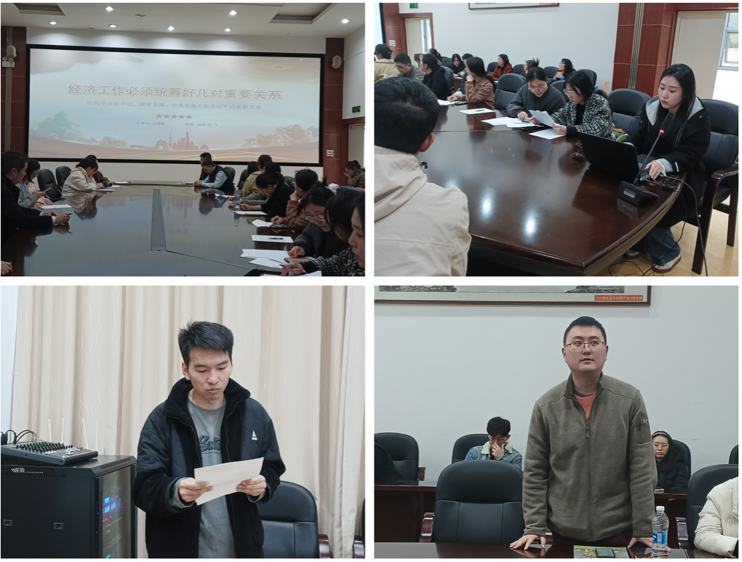 随后,支部党员围绕此次学习内容展开了热烈的交流讨论,支部党员黄世成认为,统筹好“稳”与“进”的关系,统筹好“质”与“量”的关系,体现了经济学中“动态平衡”的思想和“效率与公平”的辩证统一。支部党员李扬杰表示,推动高质量发展必须发挥好政府的作用,保持供需两侧协同发力、动态平衡,大力发展新质生产力,提高资源配置效率,坚持以质取胜和发挥规模效应。