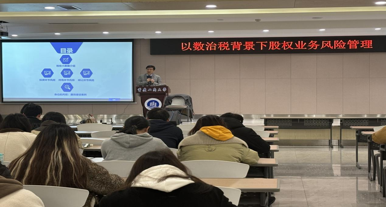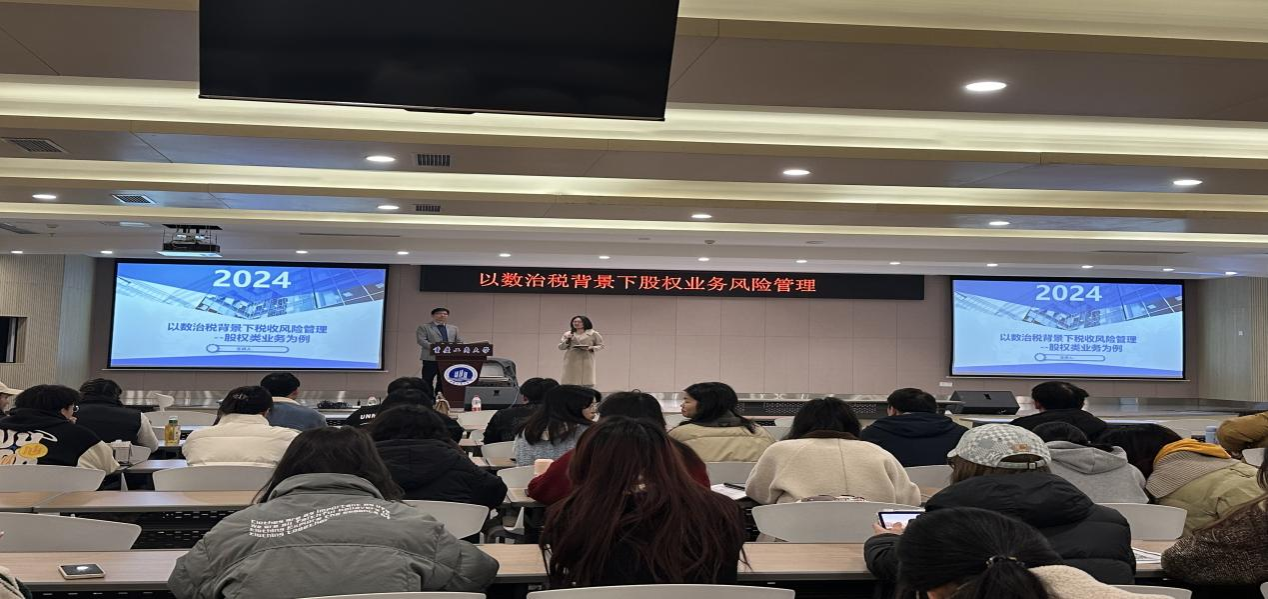 2024年3月8日上午,重庆市税务局风险管理局副局长程勇受邀来新葡萄官网为新葡萄8883官网AMG2023级税务专硕和2022级税收专业同学开展专题讲座,此次讲座主题为“以数治税背景下税收风险管理——股权类业务为例”。程勇副局长是美国加州州立大学访问学者、扬州税务学院信息化专家库成员、重庆市税务局税收科研所特约研究员、重庆市大数据局专家库成员,在税务系统从事纳税评估、风险管控多年,在大数据税收征管方面有丰富的工作经验和独特的理解。讲座为学生们开拓了以数治税背景下的税收风险管理分析新视野。此次讲座由汤凤林教授主持。