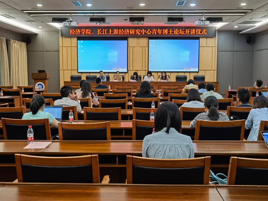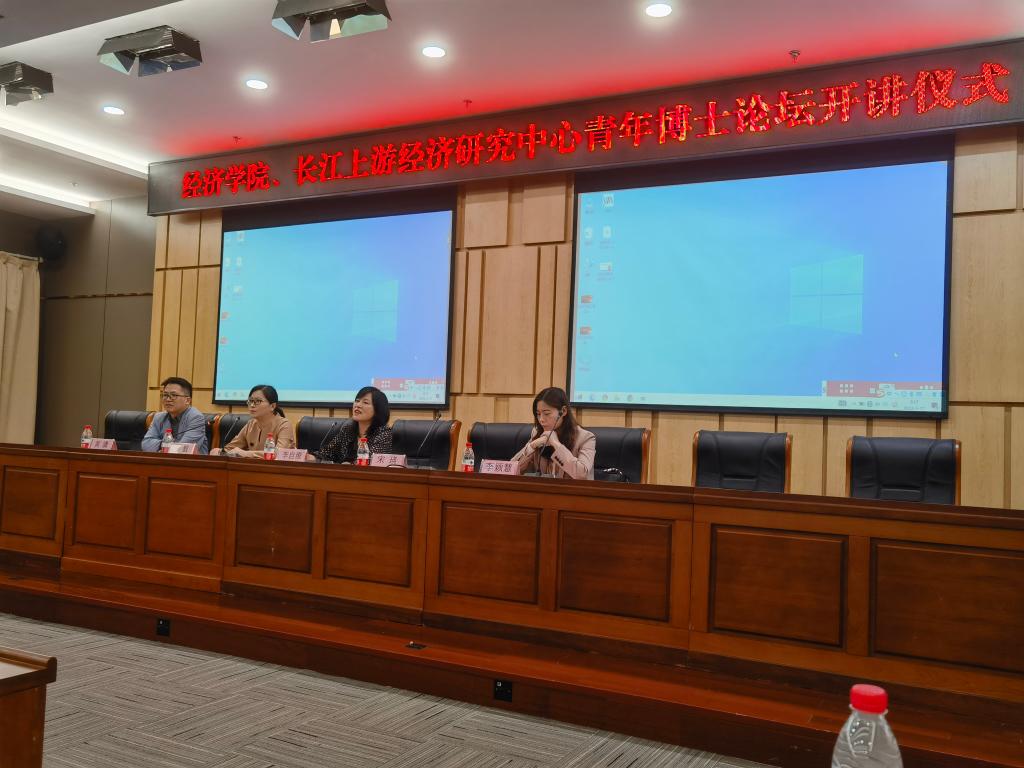 2022年5月27日上午,新葡萄8883官网AMG、长江上游经济研究中心在图书馆第一会议室联合举办了“青年博士论坛”开讲仪式,新葡萄8883官网AMG党委书记李自维、科研处处长任毅、新葡萄8883官网AMG副书记副院长宋瑛、新葡萄8883官网AMG副院长黄潇、长江上游经济研究中心主任助理李颖慧,以及新葡萄8883官网AMG青年博士教师及长江上游经济研究中心博士生出席了开讲仪式。