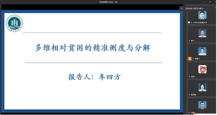 新葡萄8883官网AMG青年教师车四方副教授做了《多维相对贫困的精准测度与分析》的学术报告。车四方副教授认为缓解相对贫困是实现共同富裕的基本前提,基于此车四方老师构建了包含心理健康、环境质量等维度的多维相对贫困指标体系,借鉴A-F贫困框架体系,利用中国家庭追踪调查(CFPS)数据,引入机器学习中的随机权神经网络(NNRW)方法,精准测度并分解了中国城乡间、区域间居民的多维相对贫困广度、深度和强度水平。最后车四方老师强调,无论是城乡间还是区域间,随着相对贫困维度的增加,多维相对贫困的广度、深度和强度指数呈下降趋势,表明发生极端多维相对贫困的居民逐渐递减。