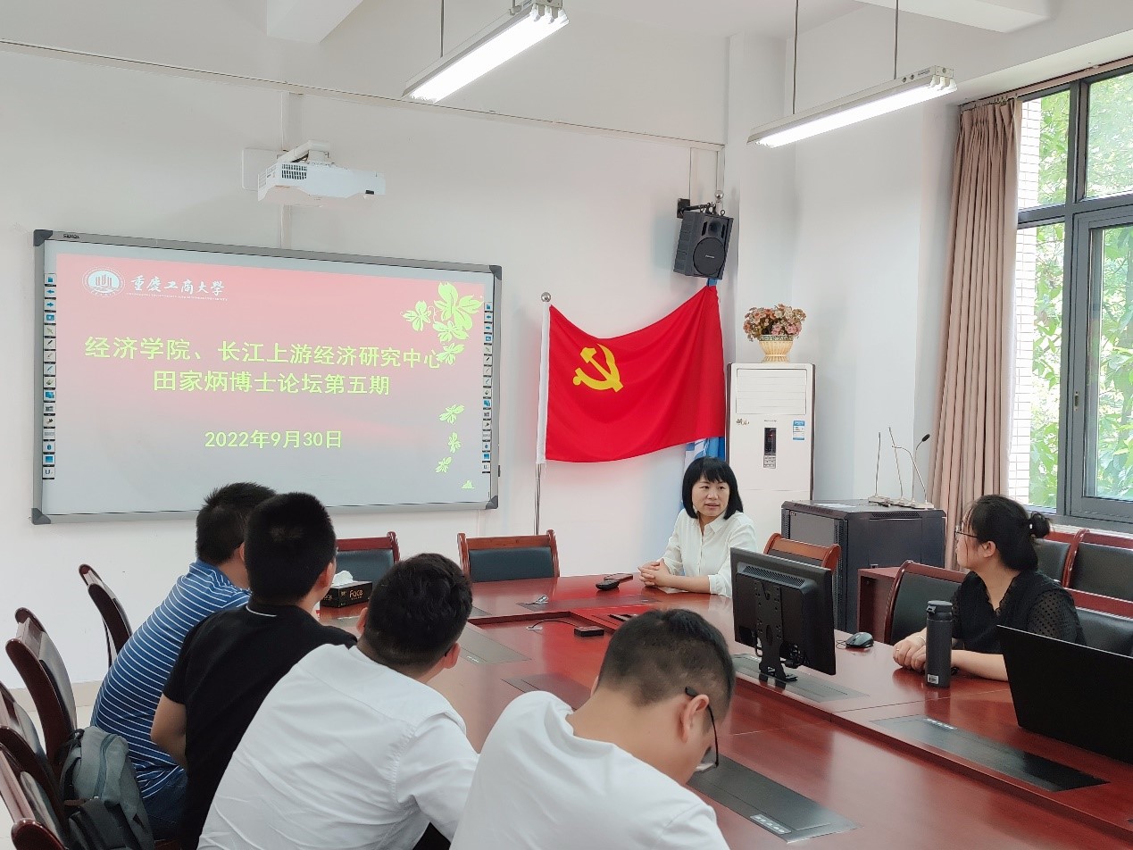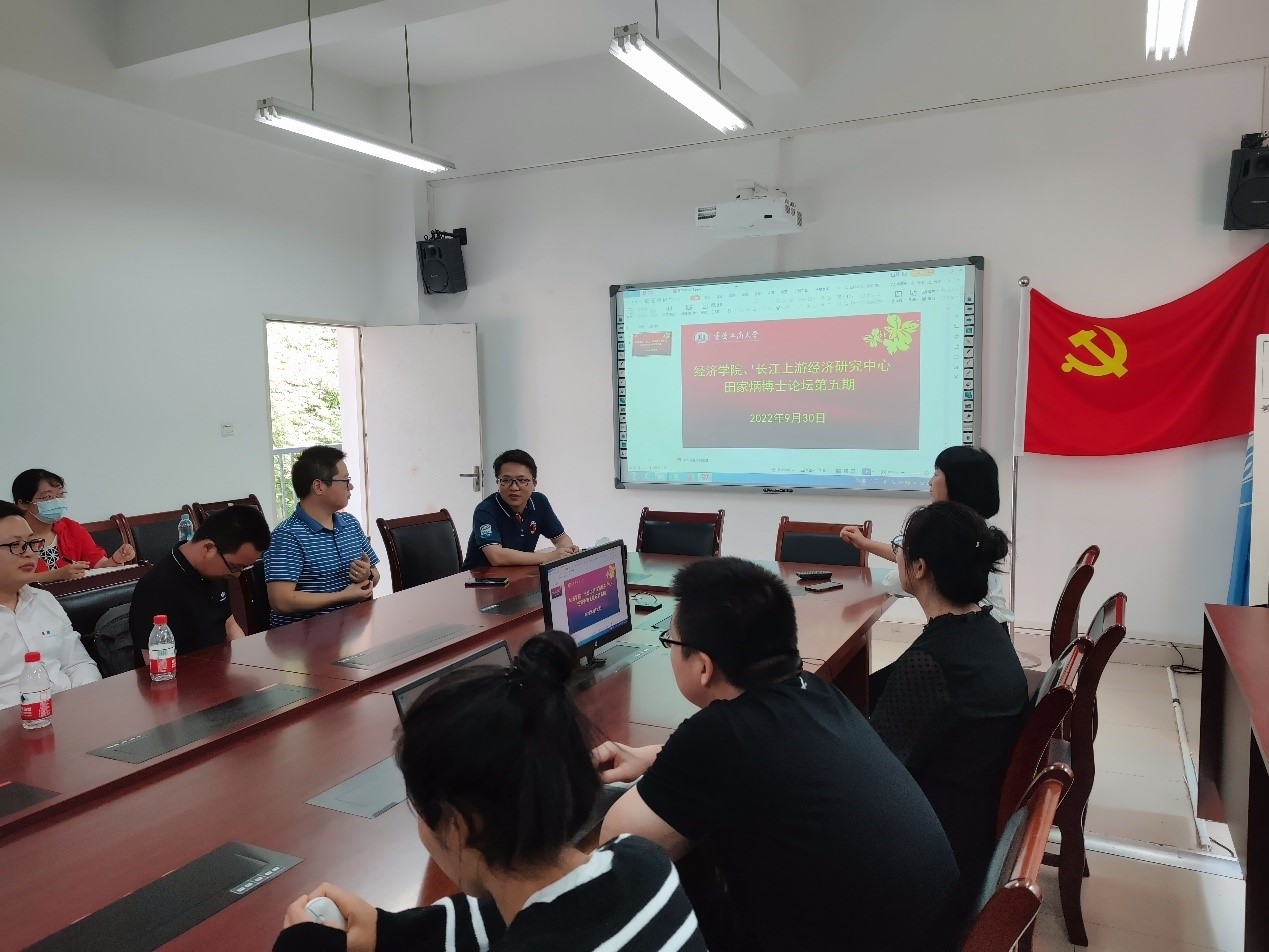2022年9月30日上午,新葡萄8883官网AMG、长江上游经济研究中心于田家炳404会议室举办了第五次“田家炳博士论坛”,新葡萄8883官网AMG副书记副院长宋瑛教授、副院长黄潇教授、青年博士教师和长江上游经济研究中心的博士研究生参加了本次论坛。青年教师王建业博士、雷俐博士分别进行了汇报发言。