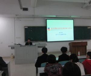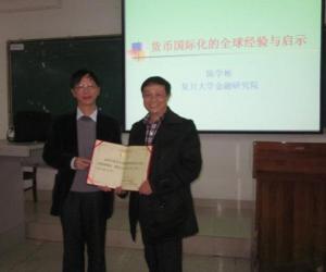 陈学彬教授从货币国际化的演变史出发,对货币国际化的定义、货币国际化的条件、货币国际化的实现模式、货币国家化的路径、货币国际化的利弊等问题进行了阐述,说明了货币国际化的路径主要是本币流出到回流渠道,最后从六个方面给出货币国际化对人民币国际化的启示,主要有国际货币体系的变革、中国经济和贸易的持续高增长、人民币国际化路径等方面。陈教授用详实的数据、明了的图表进行了专业的解析,报告分析严谨、引经据典、风趣幽默、形象生动,引起了在座师生的强烈共鸣。