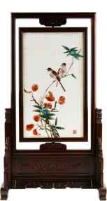 作品名称:夏布单面绣《红叶鸟》