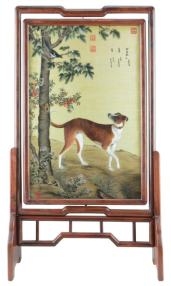 作品名称:夏布双面绣《十犬图-茹黄豹》