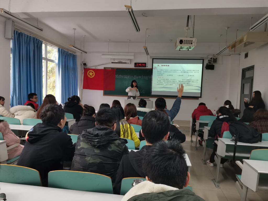 本次团日活动各团支部结合自身情况,分别从“学习贯彻落实党的十九届四中全会精神”、“讲红色故事,讲革命精神,做有理想信念的中国人”、“学习贯彻落实《中国共产主义青年团支部工作条例(试行)》具体措施”等方面加强支部团员自身思想建设,传承红色基因,坚定支部团员的理想信念。本次活动更是涌现出许多独具特色的团日活动新形式。18会展经济与管理团支部的团员们选择走出学校,去红色基地亲身感受革命魅力,体悟先辈的精神;17国贸一班团支部的同学们在食堂的长桌上面对面地坐在一起谈心,共同感受新时代人民生活的变化。