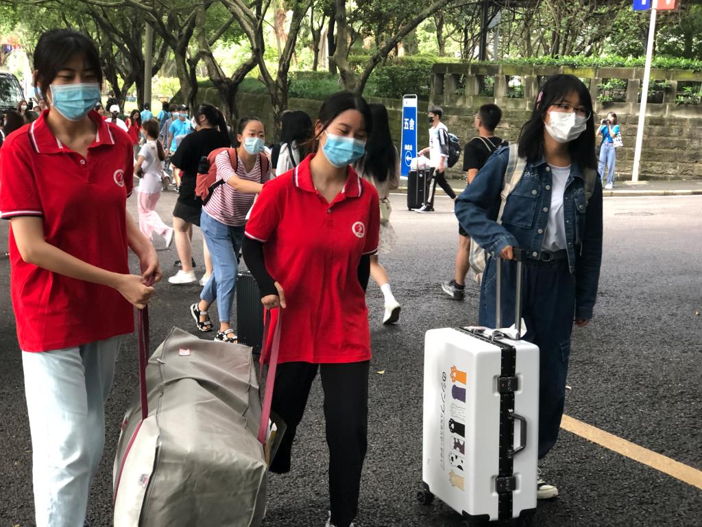 新葡萄8883官网AMG参加本次迎新的志愿者为40人,分别来自大二、大三年级。早上六点,着红色院服的新葡萄8883官网AMG志愿者们陆续从南岸校区出发前往江北校区新生接待处,大家完成签到、明确工作任务后,分头前往各自工作岗位投入了紧张繁忙地迎新接待准备工作。早上七点便陆续有提着行李的新生前来报到,一张张崭新的面孔为清晨的校园注入了新鲜活力。在校门口,志愿者们主动从家长手中接过新生的行李,带领新生有条不紊地去篮球场对应帐篷处领取报到单、去核算采样点做核酸、办理寝室入住手续等相关入学工作。放眼望去,校门口、核酸检测处、宿舍楼、校园道路上,到处都是志愿者们留下的红色身影,他们精神饱满,积极耐心,不辞辛苦,怀有满腔热情,热心为同学们服务。另外,为了让新生们尽快熟悉新环境,融入大学生活,作为学长、学姐的他们也细心地向新生们介绍学校各楼层分布,为新生指路,告知生活注意事项,为学弟、学妹们将来的生活提出了切身实际的建议,一路谈笑风生。炎炎烈日,难敌新一届求学渴望;默默奉献,方显志愿者无私真诚。