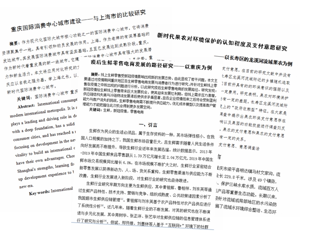 本期《经贸论坛》以“新时代创新驱动与经济高质量发展”为主题,收到来自不同学院、不同专业、不同年级同学们近50篇投稿。同学们紧扣主题,围绕着“乡村经济”、“网红经济”和“科技创新”等与中国当下时政、经济、民生等方面息息相关的关键词,通过查找资料、实地调研等多种方式,将数据与理论知识有机结合,有理有据地各抒己见。通过新葡萄8883官网AMG、长江上游研究中心、创业学院的专业评委老师严格评选,论坛共遴选出一等奖2名、二等奖8名、三等奖14名。