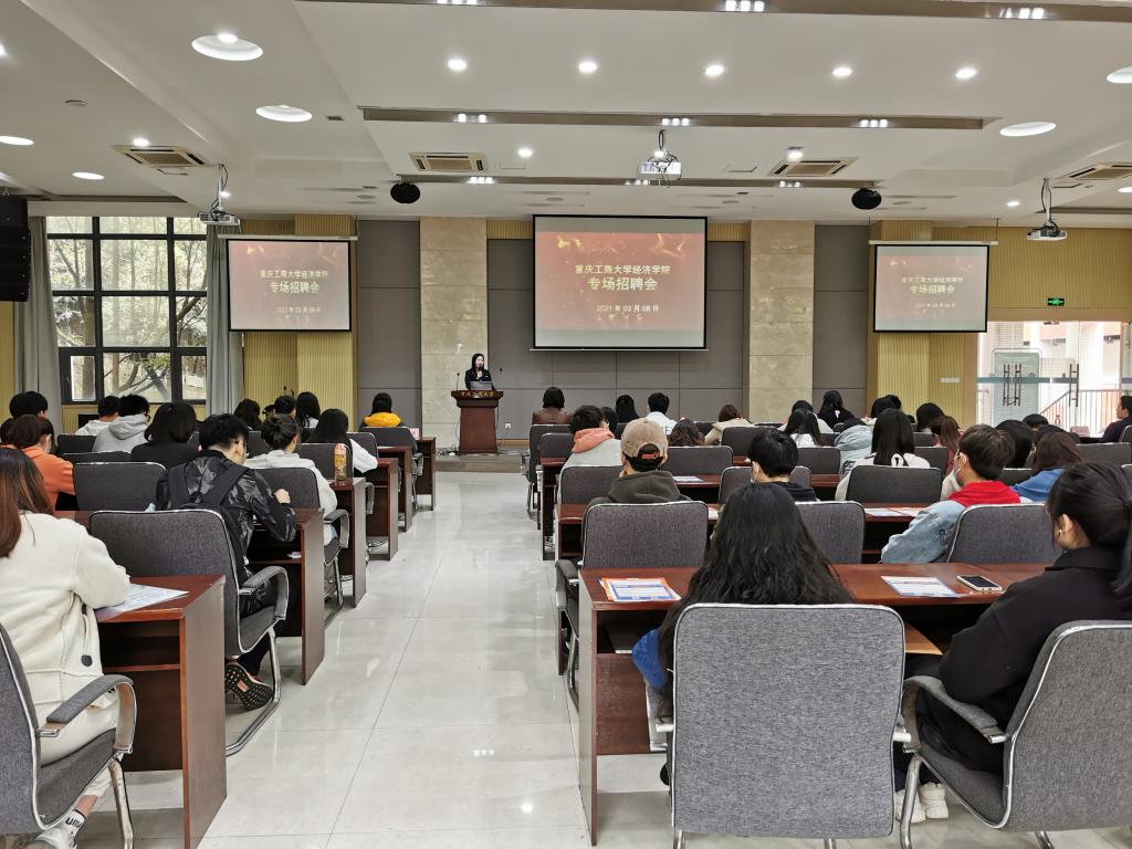 为拓宽毕业生就业渠道,给予全面的指导和帮扶,2021年3月8日下午14点,新葡萄8883官网AMG联合重庆市南岸区华成职业技能培训学校、学而思网校、五斗米、渤海证券和猿辅导等五家单位在田家炳书院05408报告厅举办了专场招聘会。新葡萄8883官网AMG分党委副书记、副院长王燕教授,就业联络员邓雪霜,毕业班辅导员张涛、文理;华成职业技能培训学校校长王会蓉,副校长邹绘;学而思网校招聘经理乾程,招聘主管吴寒冰、张婷婷;五斗米饮食文化有限公司总经理罗开林,人事经理钟光容,人事专员钟娇;渤海证券副总陈斌,总监祝贵臣,顾问王琪;猿辅导人力资源高明利、曾滟婷;以及90余名学生参加了本次招聘会。