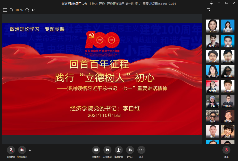 2021年10月15日下午2:30,新葡萄8883官网AMG通过企业微信召开了教职工政治理论学习大会。学院院领导、长江上游经济研究中心及全体教职工参加了本次大会。会议由新葡萄8883官网AMG党委书记李自维主持。