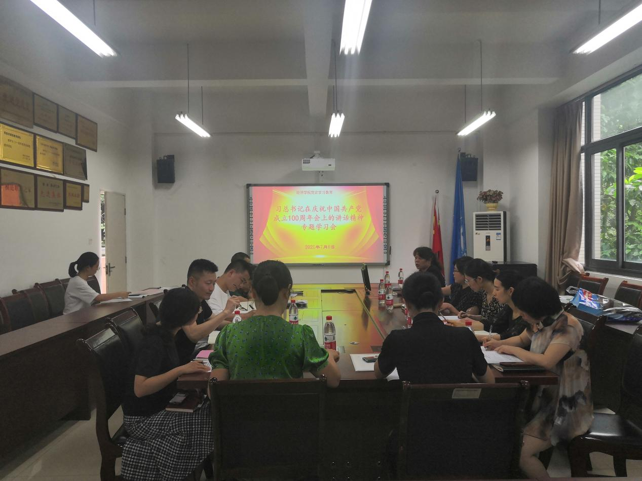 2021年7月6日,新葡萄8883官网AMG党委在田家炳书院50404开展了“习近平总书记在庆祝中国共产党成立100周年会上的讲话”专题学习会,学院党委书记李自维、专职组织员雷菁以及全体支部书记参与了学习会。