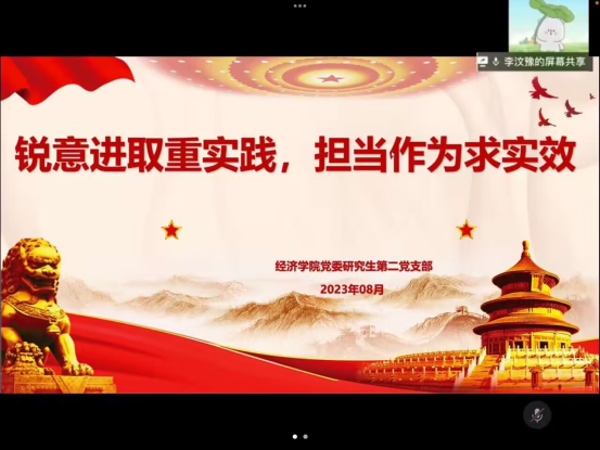 2023年8月18日上午,新葡萄8883官网AMG党委研究生第二党支部在企业微信以线上的形式开展2023年8月组织生活暨主题党日活动,活动由二支部党员李汶豫同志主持,支部书记高娟同志和二支部全体党员参加本次学习活动。