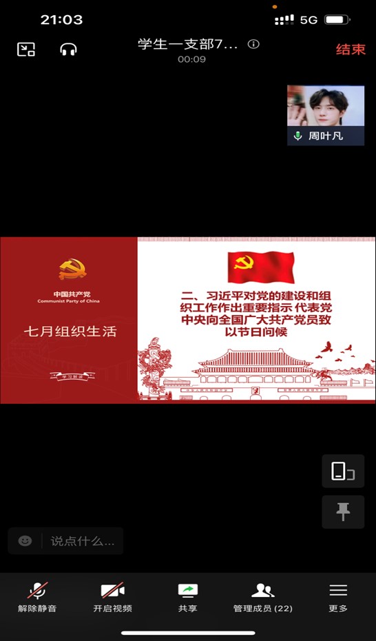 7月20日,新葡萄8883官网AMG学生一支部组织召开了“忆初心强党性,学思想见行动”为主题的七月组织生活会,会议以线上方式进行,围绕2个部分展开,由王娅秋同志主持,共计22名党员参会。