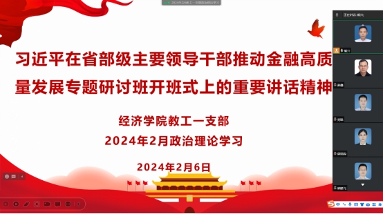 2024年2月6日,新葡萄8883官网AMG教工第一支部通过企业微信开展二月组织生活,集体学习习近平总书记在省部级主要领导干部推动金融高质量发展专题研讨班开班式上的重要讲话。