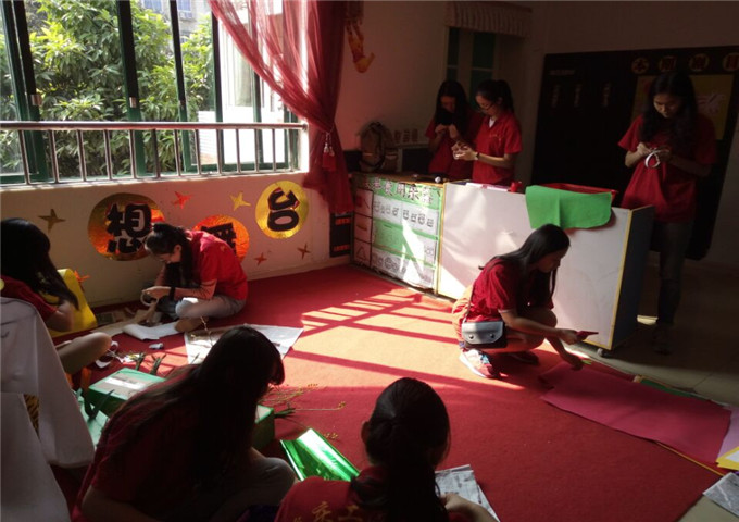 10月22日,北六党服的多名同学在课余时间前往新葡萄8883官网AMG新村幼儿园为小朋友们精心准备第二天“虚拟餐厅”课堂活动使用到的一些手工作品,通过自己的简单劳动为小朋友的课堂增添趣味。
