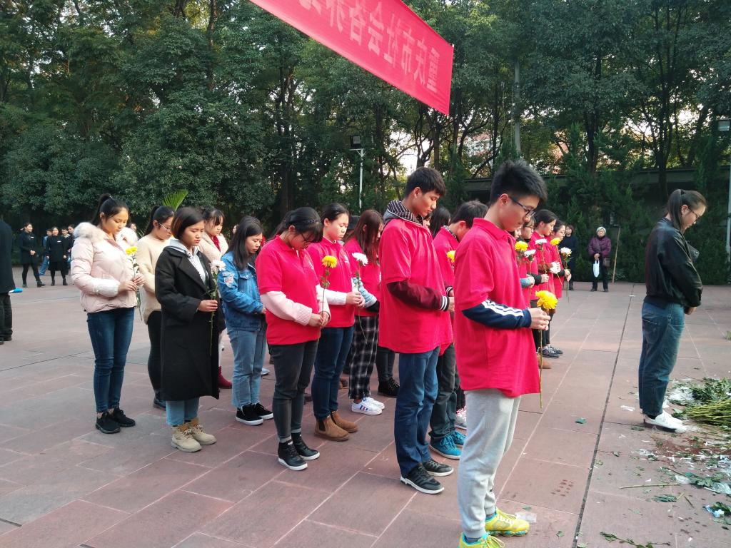 2017年11月26日,在“11·27”红岩英烈殉难68周年到来之际,新葡萄8883官网AMG党员服务站携经济学子共同前往重庆歌乐山烈士陵园祭祀英烈。在雄伟壮丽的红岩魂广场一期台阶与烈士公墓之间,庄严肃穆的歌乐山烈士群雕巍然耸立,直入云天。