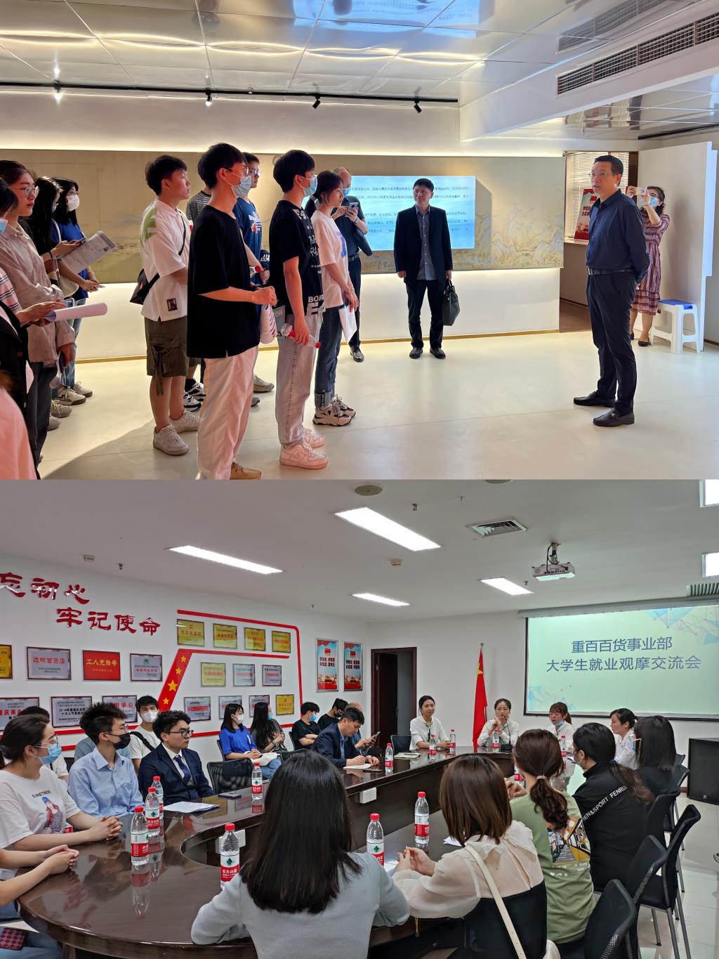 2022年4月27日上午,新葡萄8883官网AMG副院长尹元福带领新葡萄8883官网AMG应用经济系李然主任,毕业班辅导员喻智成老师、新葡萄8883官网AMG部分大四学生等一行赴国家级经济学实践教学基地——重庆商社集团进行访企拓岗就业实习观摩活动。双方就人才招聘与就业问题进行了深入交流,学院以前已毕业校友现重百员工同经济学子深切分享工作经验。商社集团人力资源部部长张泽军、人力资源主管林霞、重庆百货事业部人事主管李艳、百货事业部部分员工参加了本次活动。