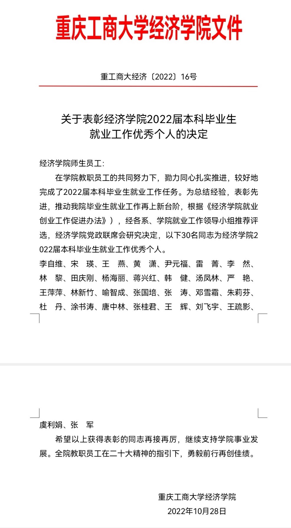 李自维书记宣读了关于表彰新葡萄8883官网AMG2022届本科毕业生就业工作优秀个人的决定。先进个人代表贸易经济系主任杨海丽、应用经济系教师杜丹、2022届辅导员喻智成作了交流发言。