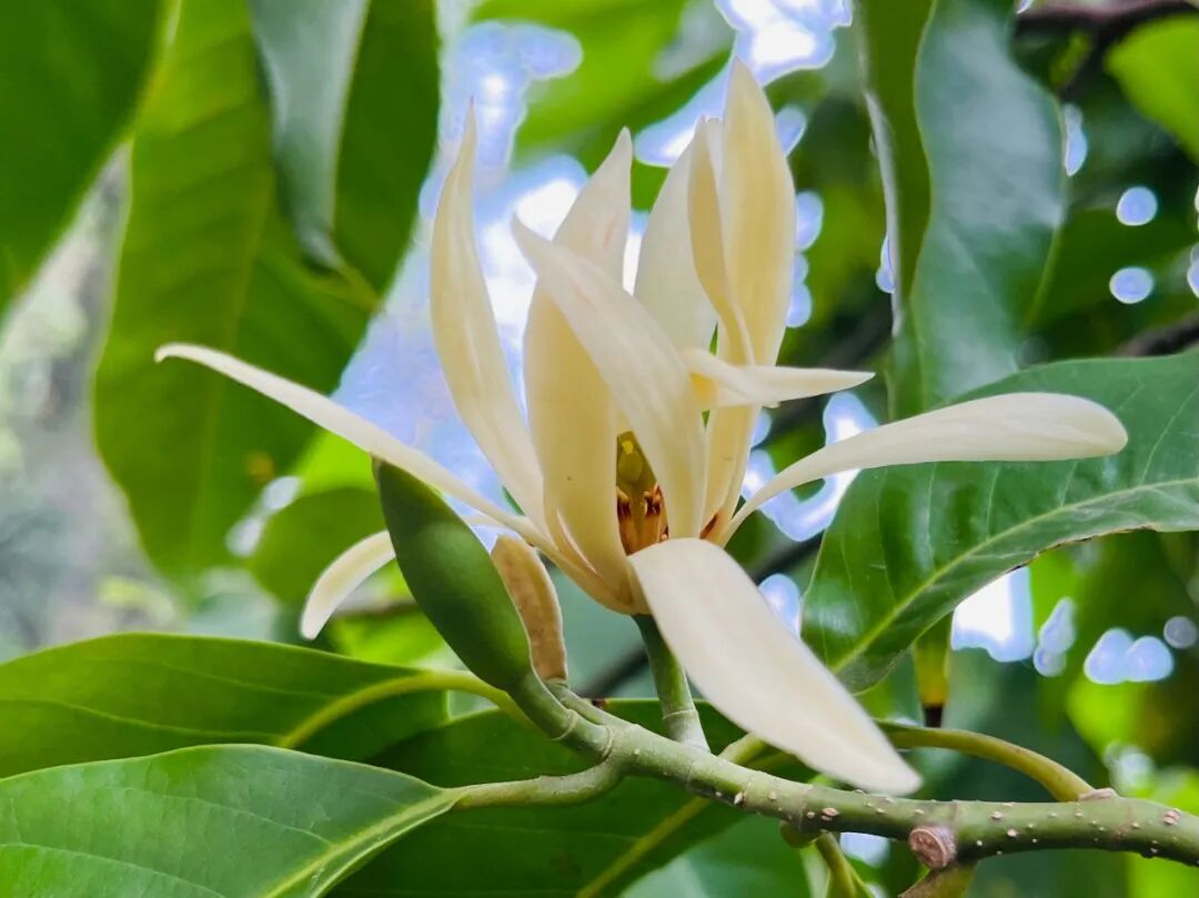 宋代诗人杨万里曾为它写下诗句:“熏风破晓碧莲苔,花意犹低白玉颜。一粲不曾容易发,清香何自遍人间。” 寥寥数语,便勾勒出黄桷兰的素雅姿态与沁人芬芳,也让这份校园里的自然之美,多了几分人文底蕴。